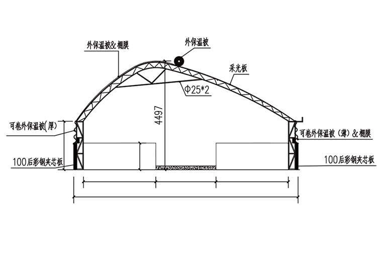 新型陽光養(yǎng)殖棚舍系列產(chǎn)品剖面圖